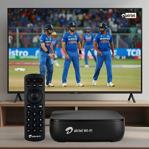 Upgrade your home entertainment and internet experience with the all-new Airtel AirFiber combo unit. This comprehensive package combines a high-speed Airtel WiFi new connection with a premium 4K Android DTH Set-Top Box, delivering a complete digital solution for your home.